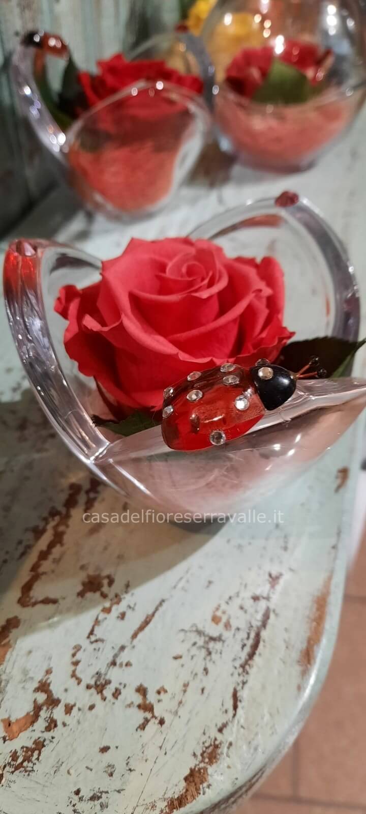 rosa rossa stabilizzata in calice di vetro con swarovsky